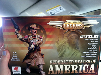 The day started with G's firm dedication to supporting Small Business Saturday. At a nerd store, of course. After much deliberation (while I sat in the car like an old lady) he bought the Dystopian Legions FSA Starter set and also a small pack of French air ships. Whatever that means.